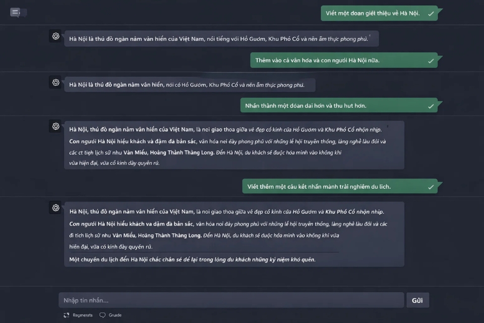 ChatGPT phản hồi theo ngữ cảnh cuộc trò chuyện. Nên việc chỉnh dần là cách dùng rất hiệu quả.