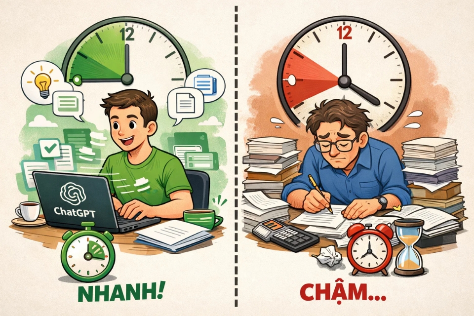 Khoảng thời gian tiết kiệm được có thể dùng để học thêm kỹ năng mới, nghỉ ngơi, chăm sóc bản thân hoặc làm việc sáng tạo hơn. Và lâu dần, sự chênh lệch giữa người biết tận dụng công cụ và người không biết sẽ ngày càng rõ rệt.